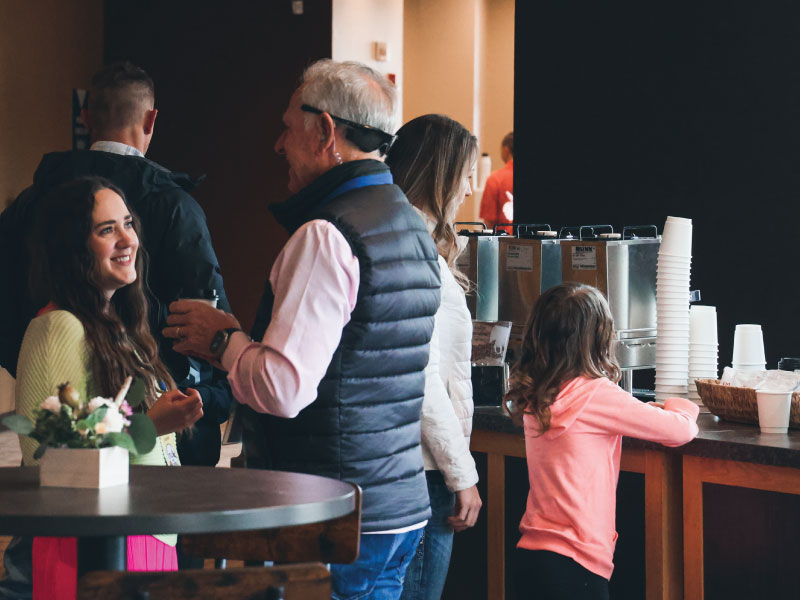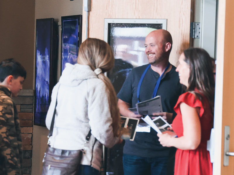 Be the first to welcome new guests into our church family by talking to them at the New Here area in the lobby.